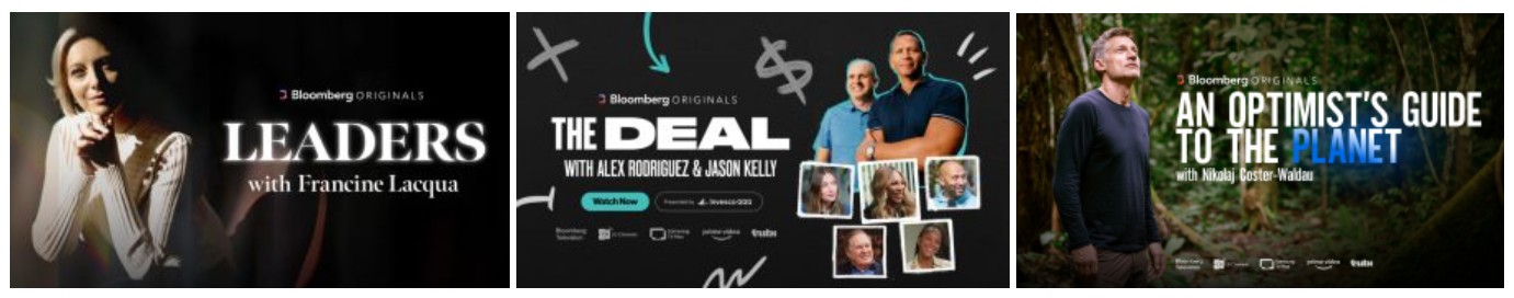 Bloomberg TV features daily flagship news shows including Surveillance, Open Interest, its recently-relaunched Bloomberg Tech show, Balance of Power, The Close, Horizons: Middle East and Africa, Insight with Haslinda Amin, The Pulse with Francine Lacqua, The China Show and Wall Street Week. Since the launch of its Bloomberg Originals content studio and dedicated stream in January 2023, the brand has also developed and hosted 26 original series and feature-length documentaries covering business through the lens of technology, climate, culture and sports. An Optimist’s Guide to the Planet with Nikolaj Coster-Waldau debuted its second season on October 22. The Deal with Alex Rodriguez and Jason Kelly and The Circuit with Emily Chang are in their third seasons, featuring in-depth conversations with newsmaking luminaries. Can’t Look Away, the documentary based on the investigative reporting of award-winning Bloomberg News journalist Olivia Carville, continues to turn heads. And in June, The Future with Hannah Fry and Bloomberg Investigates took home Bloomberg’s first News and Documentary Emmys.
